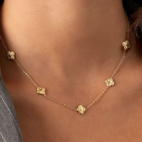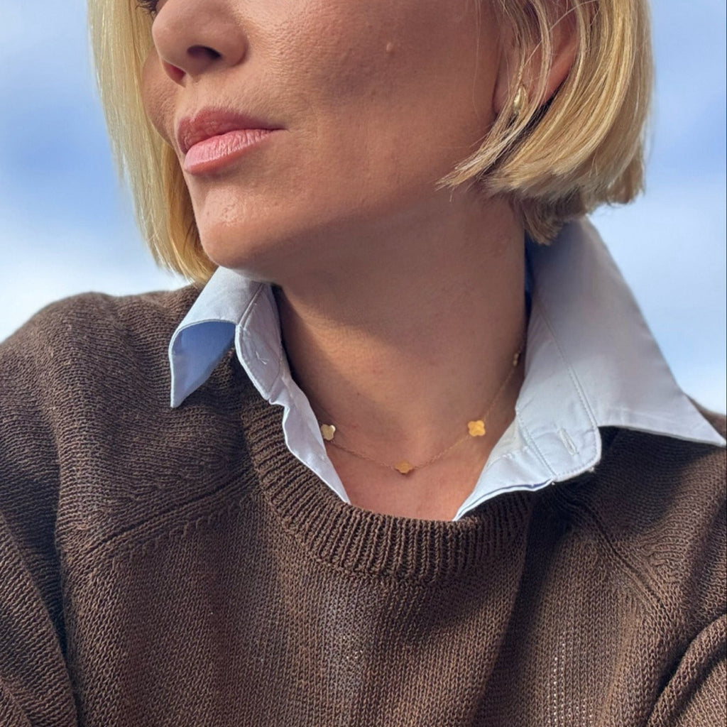 The Mini Clover Necklace is your everyday good luck charm — subtle, delicate, and full of meaning. Featuring 5 tiny four-petal clover on a fine chain, it’s the kind of piece you’ll never want to take off.